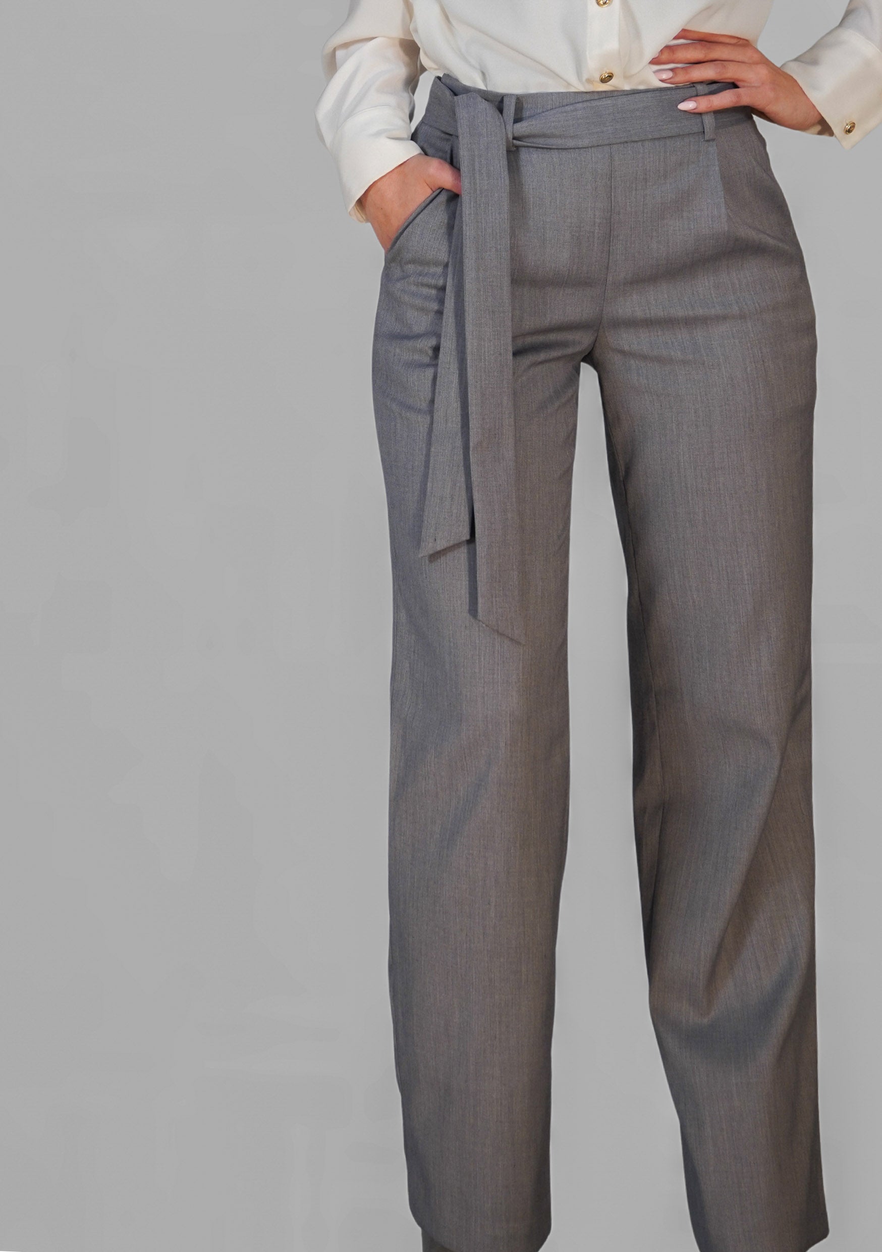 Mit einer eleganten, hohen Taille und einem fließenden, geraden Schnitt begleiten diese Hosen mühelos Arbeit, Freizeit und besondere Anlässe.